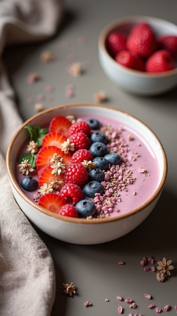 - Fresh fruit salad with a drizzle of lemon juice and mint.