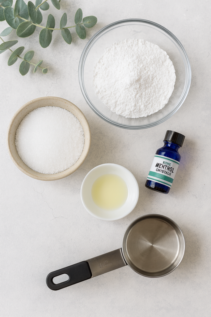 Menthol crystals | 2 tbsp (adjust to strength) | Provides cooling and decongestant effect |